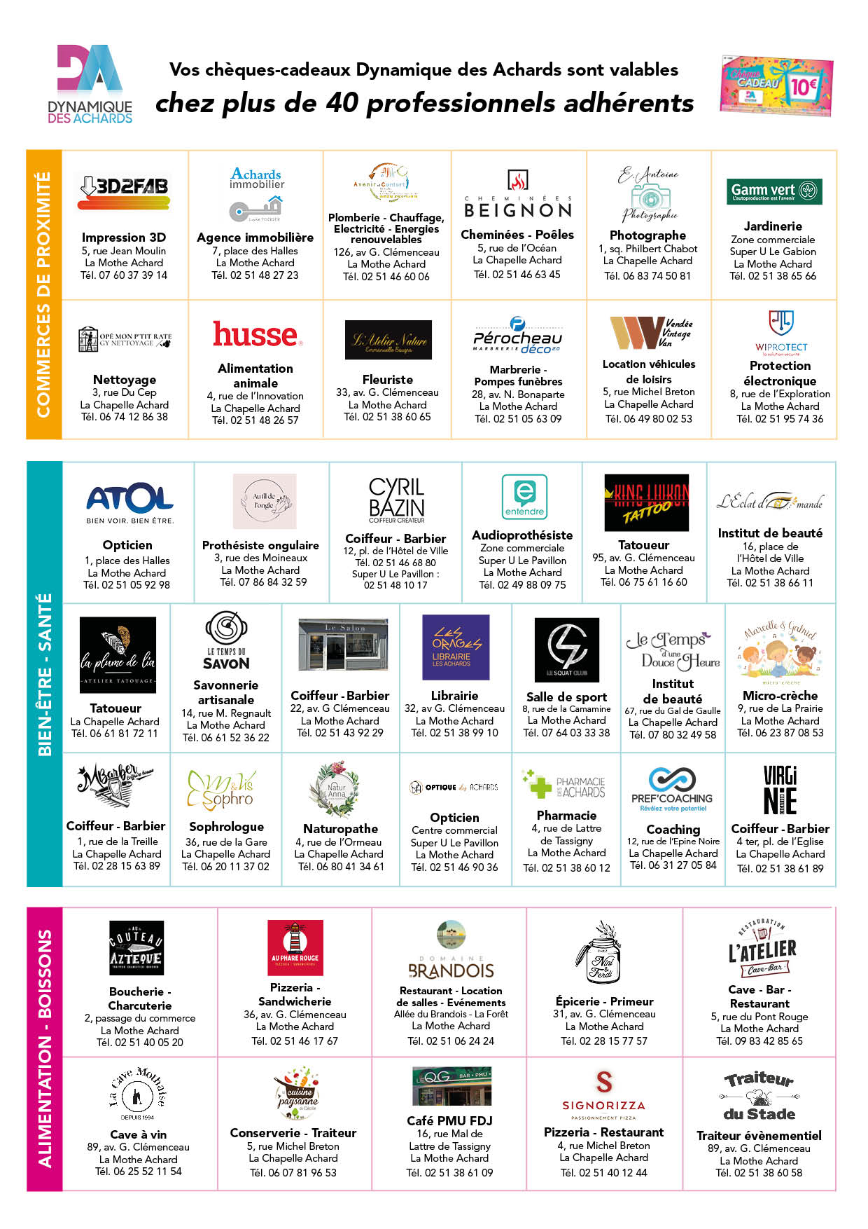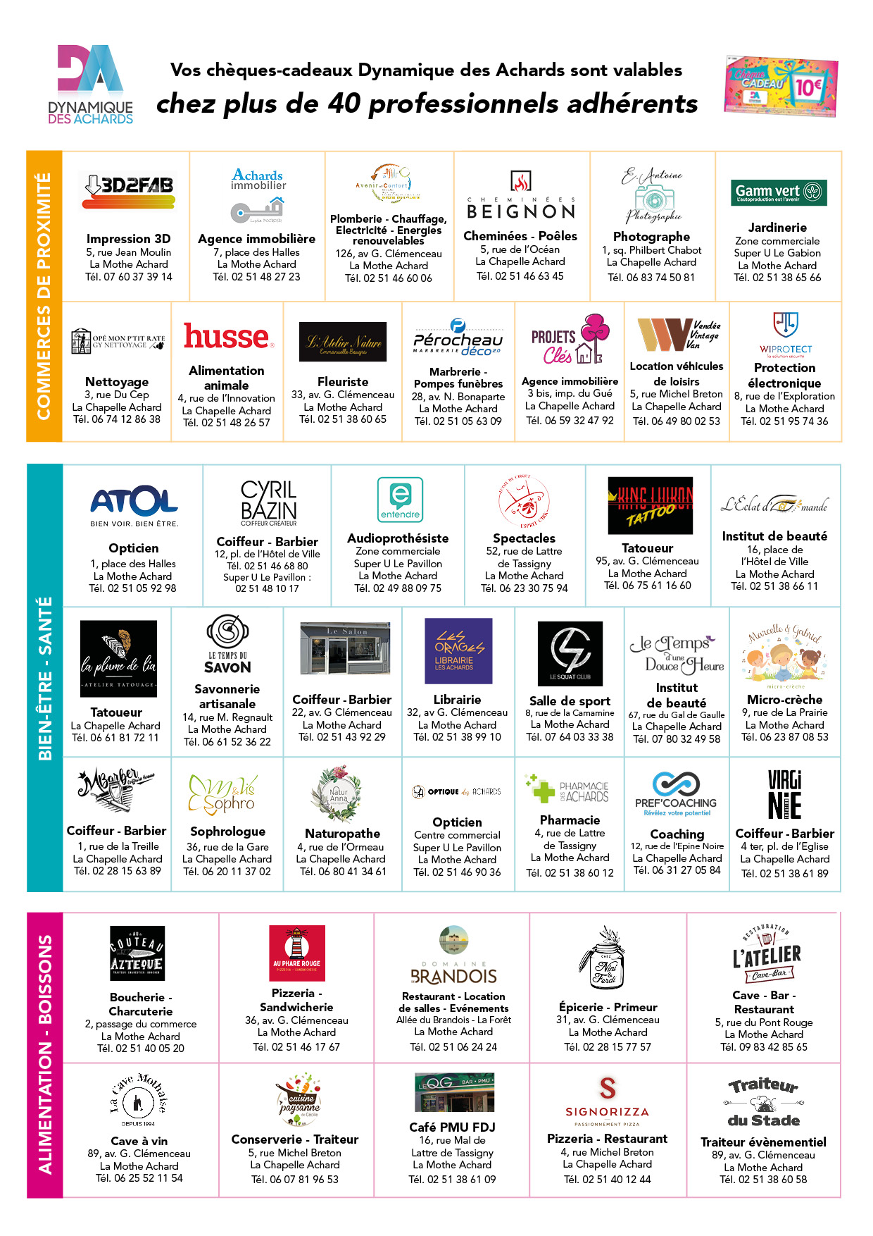 La Dynamique des Achards propose aux particuliers et aux professionnels les chèques cadeaux valables chez ses adhérents : un moyen simple de faire plaisir tout en consommant localement !